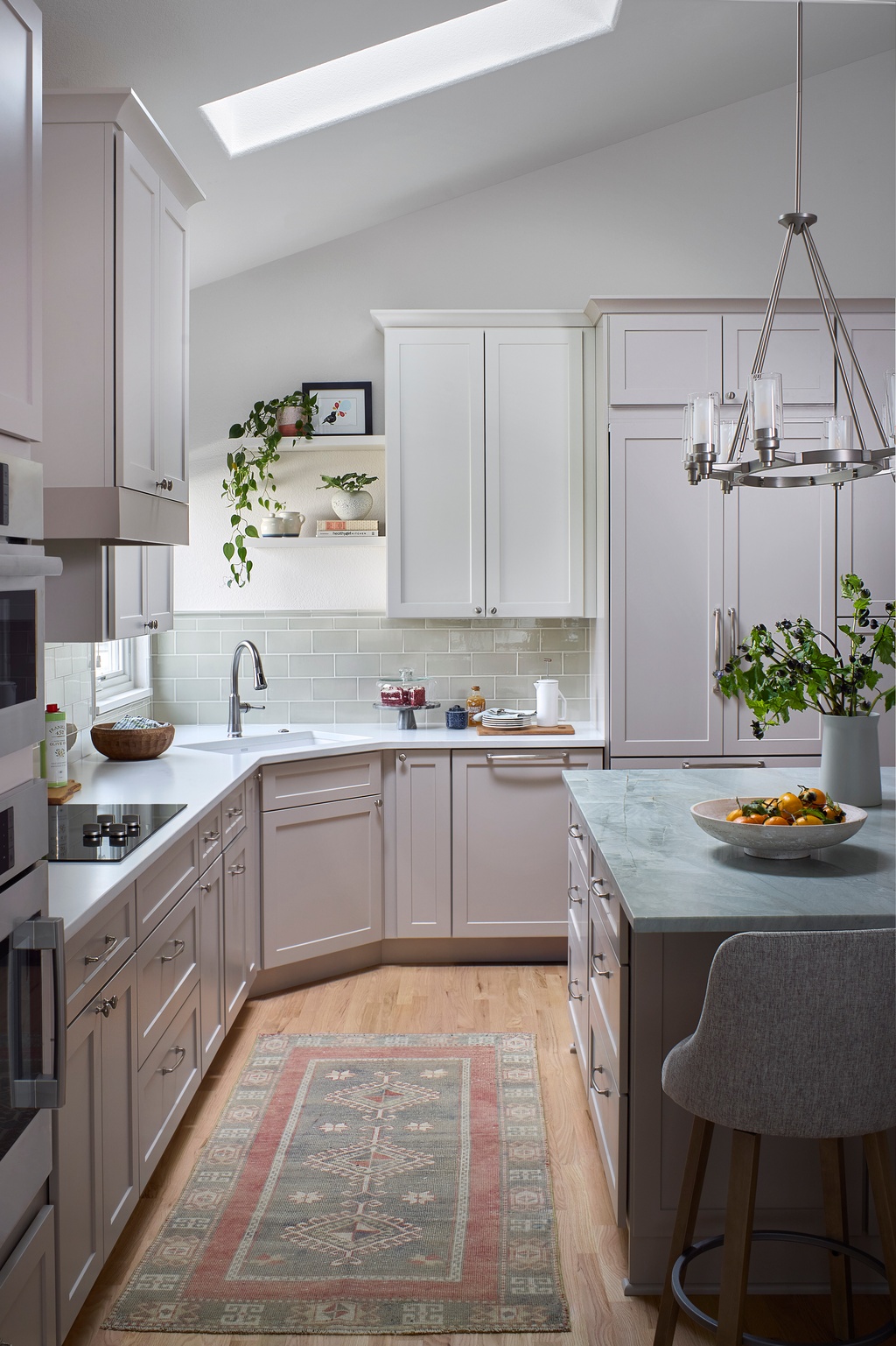 Our clients wish list was to make this space the heart of their home; a focus on family and friends with a kitchen that supports meal preparation and a space that is inviting for eating, mingling, playing board games, watching sports, and playing with their two young grandsons.